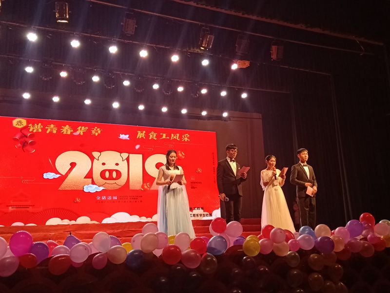 2019年1月1日晚,食品工程系在学院大礼堂举办“谱青春华章,展食工风采”元旦联欢晚会。学公司党委委员、副经理代骅,宿管科负责人禹建颖,食品工程系领导班子以及师生712余人共同观看了精彩纷呈的文艺晚会。