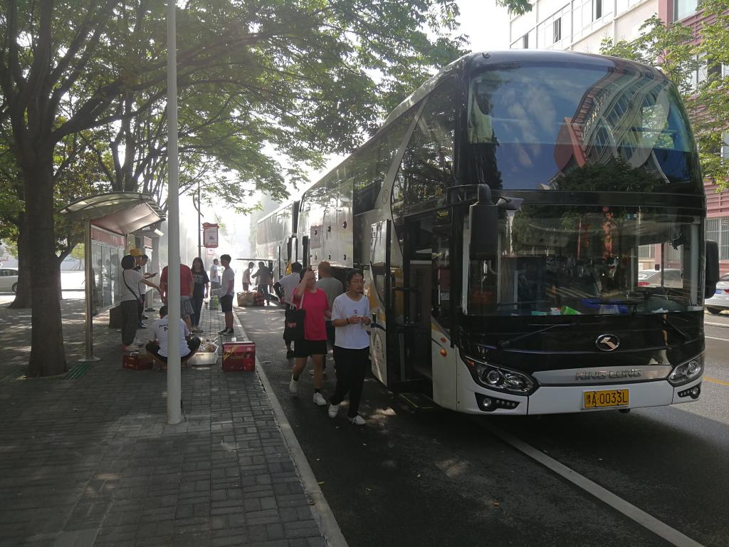 随后,在领导的祝福声中带队老师和95名员工登上班车顺利出发。