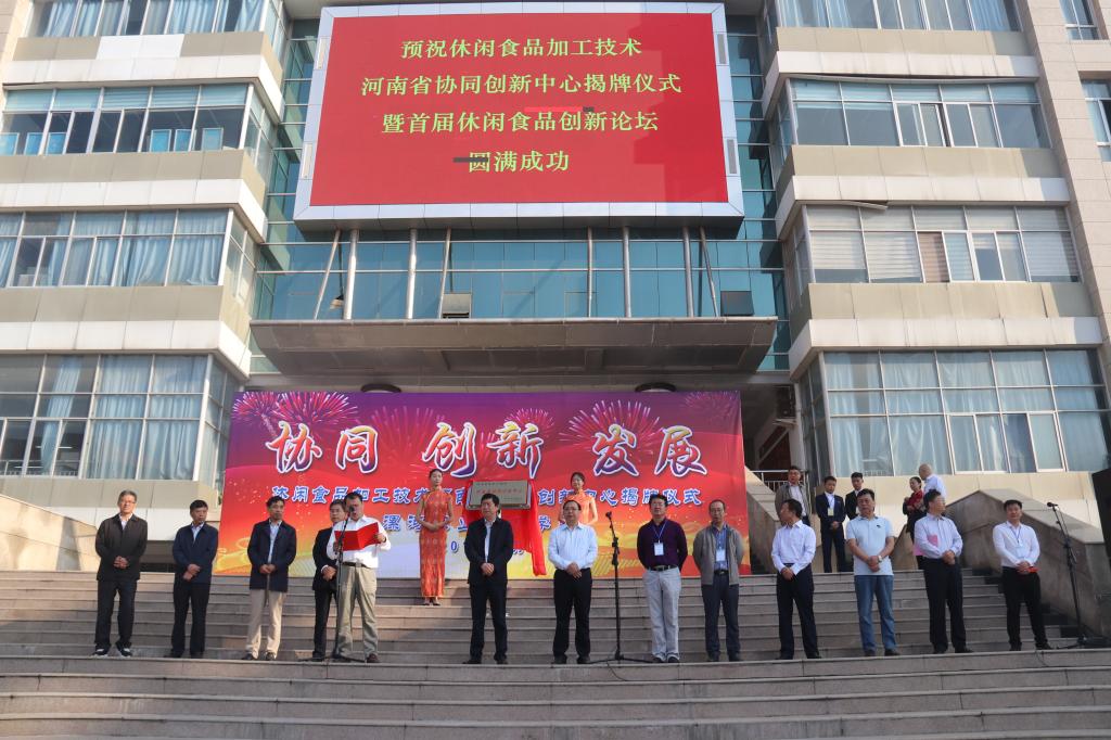 9月28日上午,“休闲食品加工技术河南省协同创新中心”揭牌仪式在公司实训广场举行。漯河市政府副市长栗社臣、公司党委书记顾文明共同为休闲食品加工技术河南省协同创新中心揭牌。河南工业大学粮油365英国上市公司经理王晓曦教授,南京农业大学食品科技学院博士生导师、国家禽肉加工技术研发中心主任黄明教授,临颍县产业集聚区管委会副主任卢庆恩,漯河市平平食品有限责任公司副总经理、研发总监刘忠思出席会议并发言。河南科技学院、河南省农产品加工与贮藏工程学会、食品科技学会理事高晗教授以及市科技局、市科协、市食品工业办公室、市食品药品监督管理局相关领导以及“中心”理事会成员单位各位理事、企业界代表和师生代表参会。董事长王春阳主持会议。