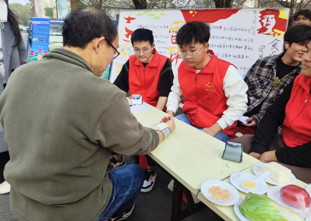 活动现场气氛热烈,志愿者与社区居民积极互动,向现场的群众介绍了关于营养健康、膳食指导、食品安全的各类知识,得到了大家的广泛赞扬。同时,志愿者服务队还在现场开展了血压检测、血糖检测、BMI(身体质量指数)测量等健康指标的检测活动,并根据健康指标的具体数值向广大居民提出了个性化的膳食建议,为肥胖和“三高”等亚健康人群制定了科学可行的膳食营养方案。