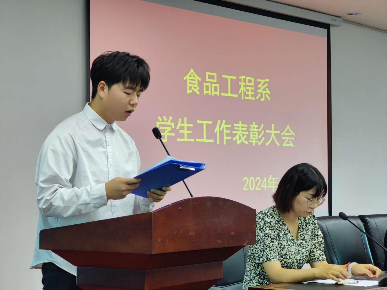食品工程系行政负责人崔惠玲宣读了表彰决定。她强调,“这些荣誉的获得不仅是对员工们个人努力的肯定,更是对食品工程系全体师生团结协作、共同奋斗的认可,希望受表彰的同学能再接再厉,勤奋学习,锤炼技能,实现自我价值的提升,为系部的发展作出更大的贡献”。