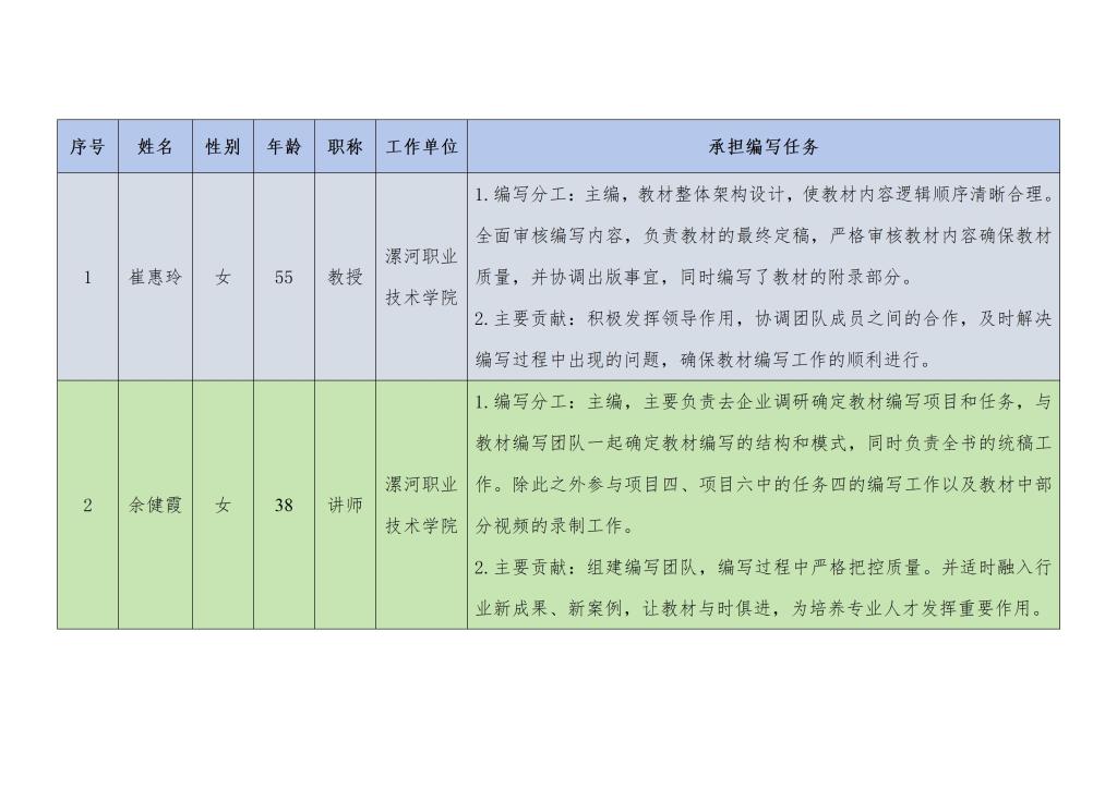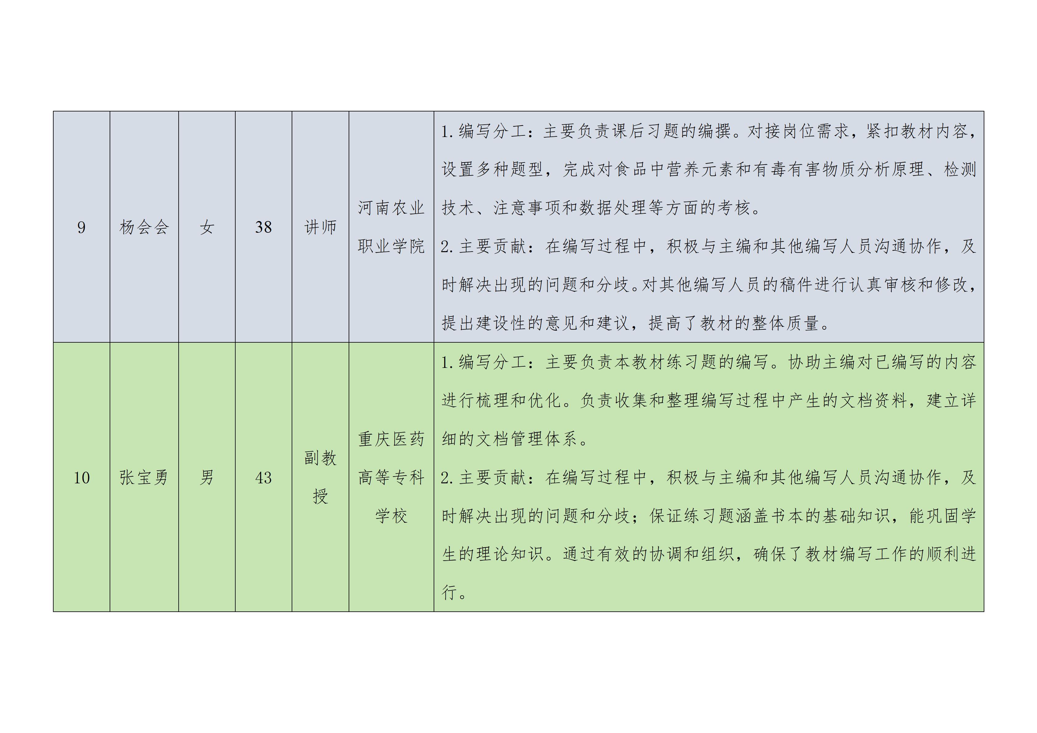 《食品理化检验检测技术》团队成员